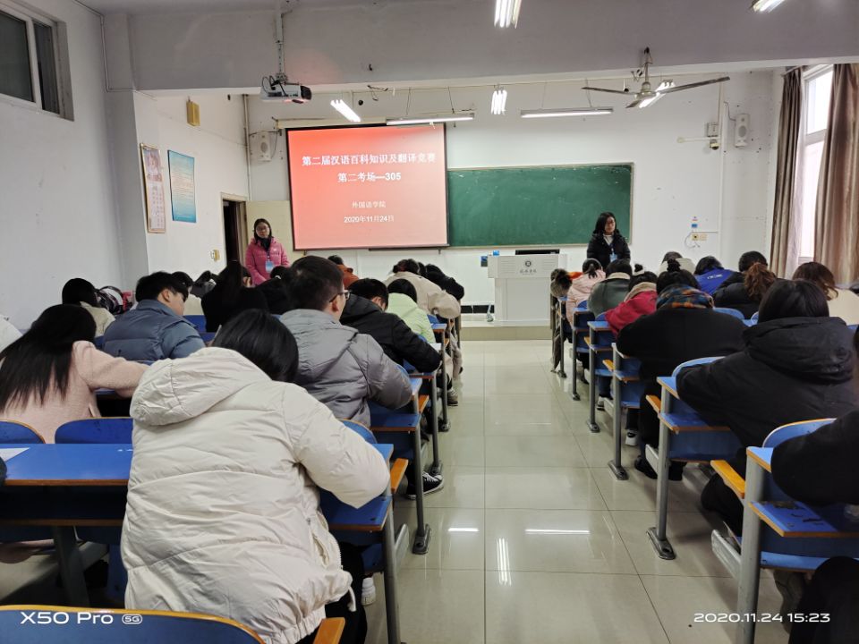 2020年11月24日下午14:00-17:00,第二届汉语百科知识及翻译竞赛在外语楼303、305、306、307和310五个教室同时进行。在考试过程中,参赛考生们认真作答,诚信考试。监考教师严肃认真,严格维护考风考纪,确保本次考试的公正和公平。
