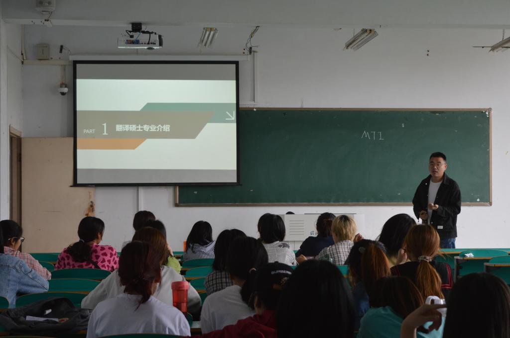 为了给有意向考研的学子们提供更多的考研经验,使同学们了解更多相关专业考研的注意事项,5月18日下午,外国语学院在外语楼502教室举行了“翻译硕士备考计划及就业方向”讲座。本次讲座由许超老师主讲。