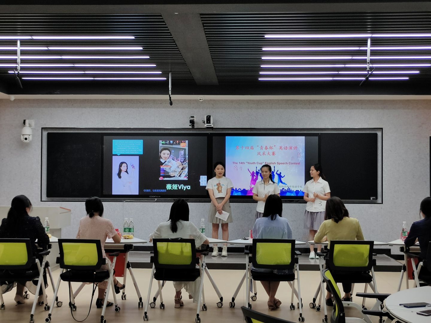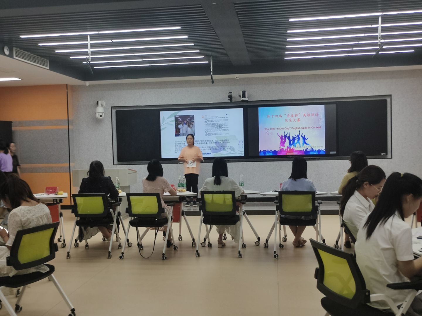 为了更好营造我校英语学习氛围,丰富校园文化,近日,外国语学院在创业大厦智慧教室413教室举行第十四届“青春杯”英语演讲风采大赛。基础英语教研室部分教师作为评委,2019级和2020级学生参加了本次活动。