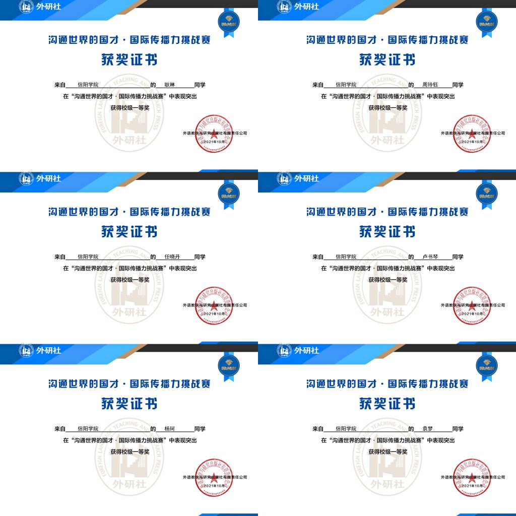 其中,2020级英语本科1班王梦瑶、2020级英语本科2班胡诗颖、田思楠;2020级英语本科3班罗小伟,2020级翻译本科1班宋贝贝等获得校级一等奖;董文静被评为优秀指导教师。