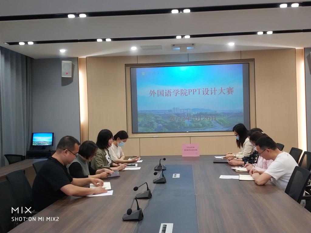 为进一步促进我院教师提升PPT制作水平,搭建教师相互交流学习的平台,推动广大教师积极投身教育教学改革实践,开展课程教学研究,提高教学水平,促进教师职业发展,5月26日,外国语学院在外语楼110会议室开展了2022年外国语学院PPT设计大赛评选活动。教学副院长李静、综合英语教研室主任黄仕圆、语言文学教研室主任周善春、大学英语教研室主任陈彦慧、商务英语教研室主任陈俊明、翻译教研室主任梁法丽、第二外语教研室主任李小莉、基础英语教研室负责人时子迪担任此次活动评委。