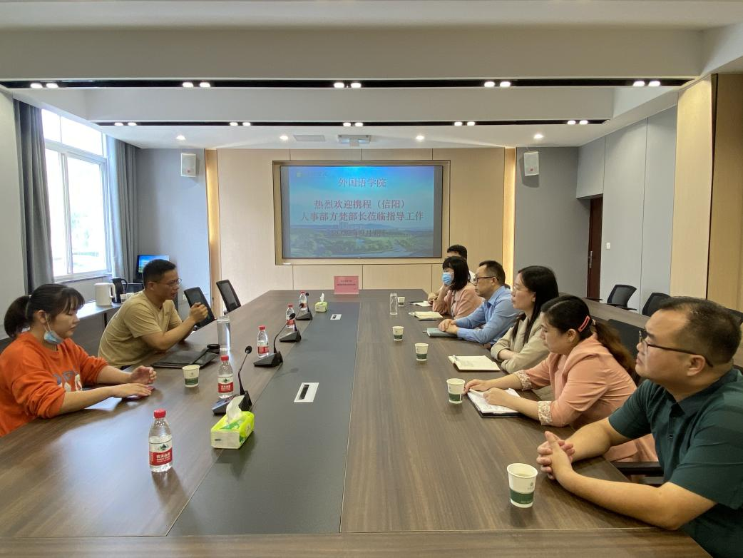 为持续推动外国语学院人才培养、产教融合发展,近日,携程公司人事部方樊部长一行与外国语学院院长罗德喜、党总支副书记程娇炎、教学副院长李静、学院干事和商务英语教研室主任陈俊明在外语楼110会议室洽谈实习基地合作事宜。会议由程娇炎主持。
