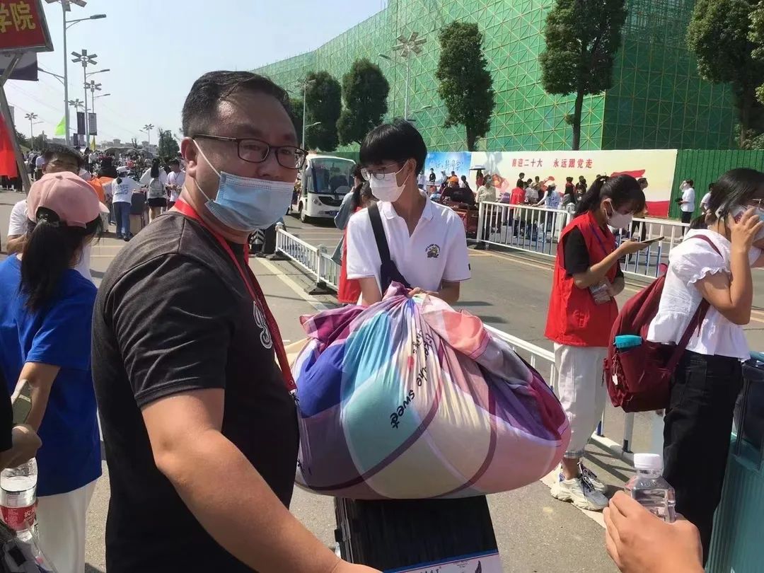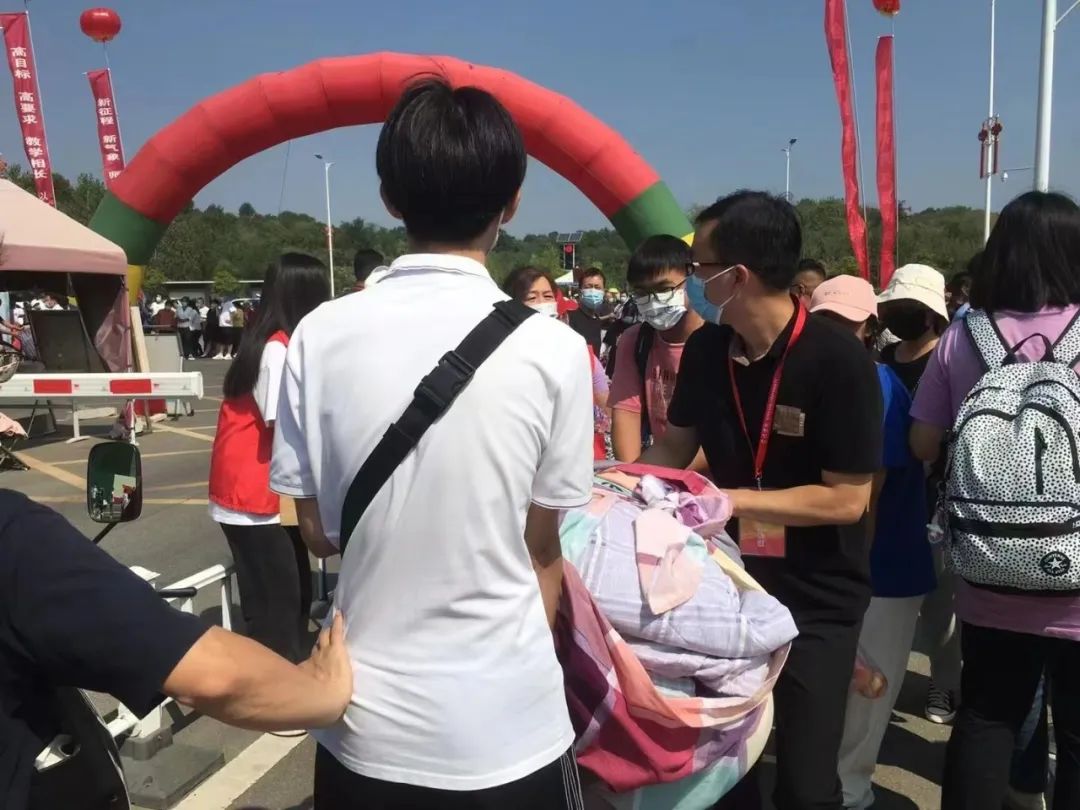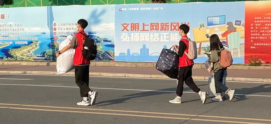 虽然家人不能进入校园帮助新生们搬运行李,但是我们外国语学院的学长学姐们早已准备好了一切,以饱满的热情来迎接新生。