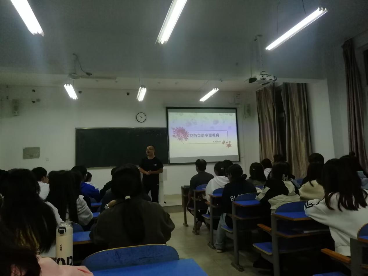 外国语学院致力于培养具培养思想政治素质过硬、中外人文底蕴深厚、跨文化沟通和专业能力突出、创新创业能力强,具有较强的实践技能,能在外贸、外事、文化、新闻出版、教育、科研、旅游等部门从事翻译、管理、教学、研究工作的英语高级专门人才。本次商务英语专业教育讲座的召开增强了同学们学习的信心,为今后的努力奋斗奠定思想基础。