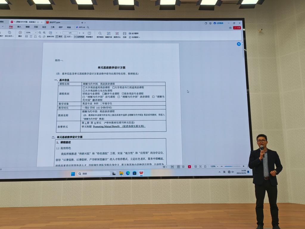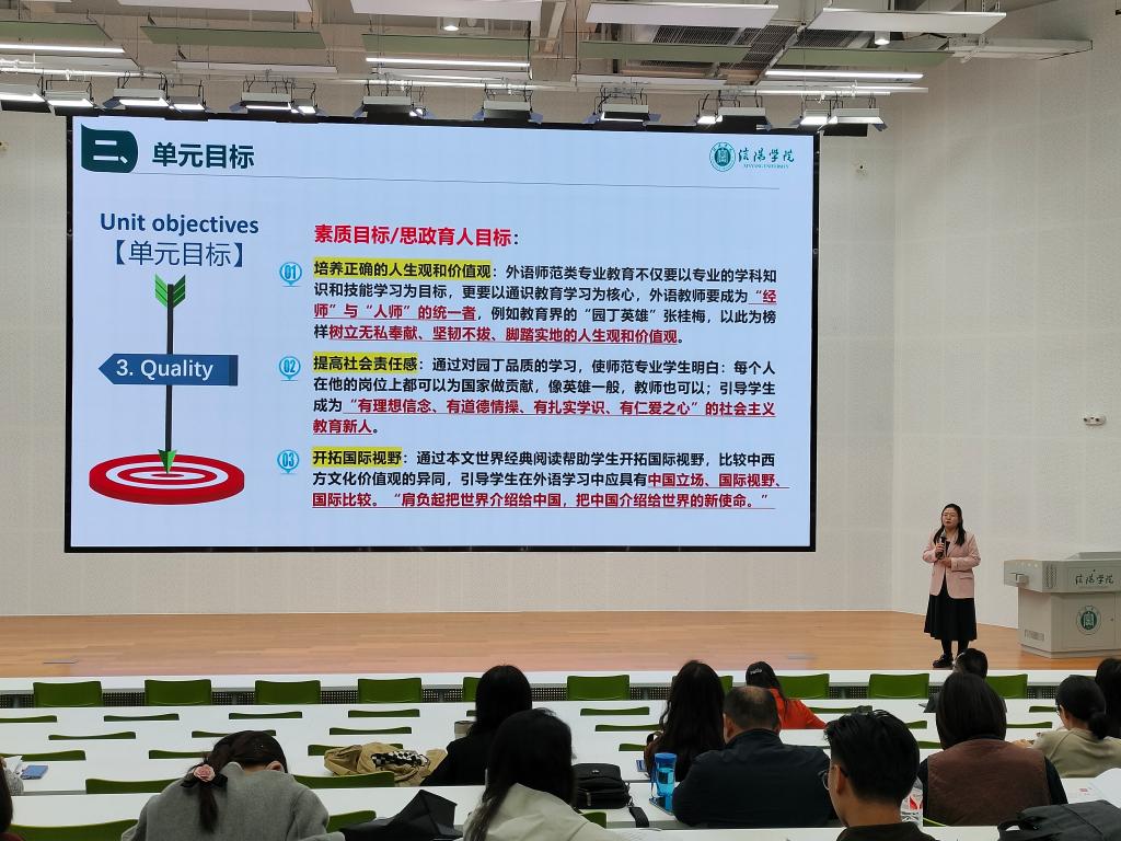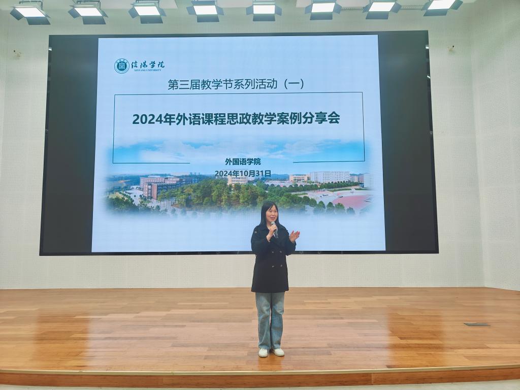 10月31日下午,外国语学院在教二楼117报告厅举行了2024年外语课程思政教学案例分享会,外国语学院院长罗德喜、教学副院长李静以及全体教师参加了本次分享会,会议由李达老师主持。