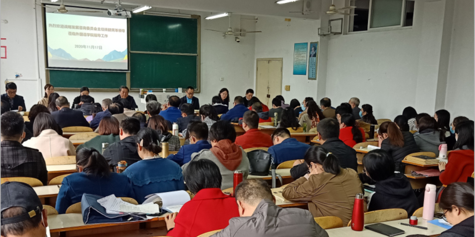 11月17日下午,信阳学院战略发展咨询委员会主任熊健民、党委办公室主任娄琪、人事处干事张兵兵等一行到外国语学院调研指导工作,院长罗德喜、教学副院长兼党总支书记李静、学院全体教师参加了会议。会议由罗德喜主持。