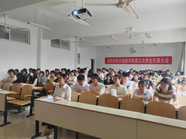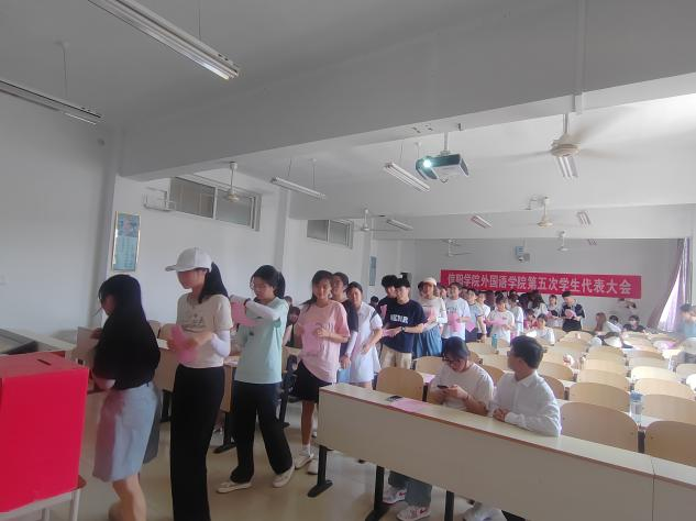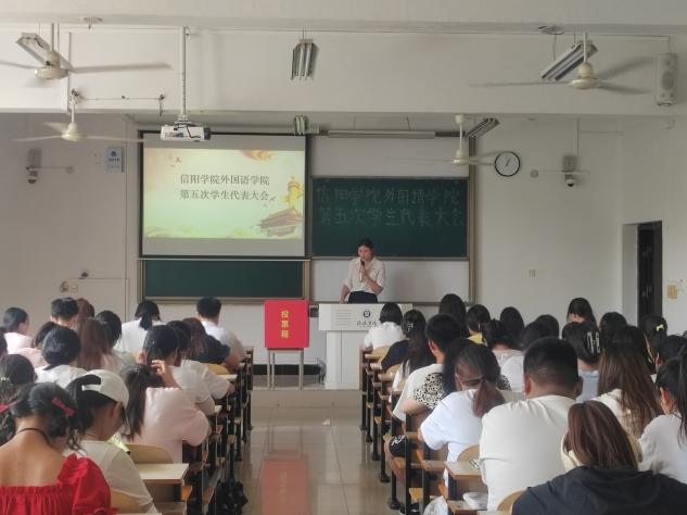 为引领广大学生凝聚思想意志,努力开创团学事业新局面,外国语学院于6月15日在外语楼202教室召开第五次学生代表大会,正式选举出出席信阳学院第五次学生代表大会代表。参会人员有外国语学院学工干事何珊珊、团总支书记郑青、学生代表和优秀团员代表。会议由郑青主持。