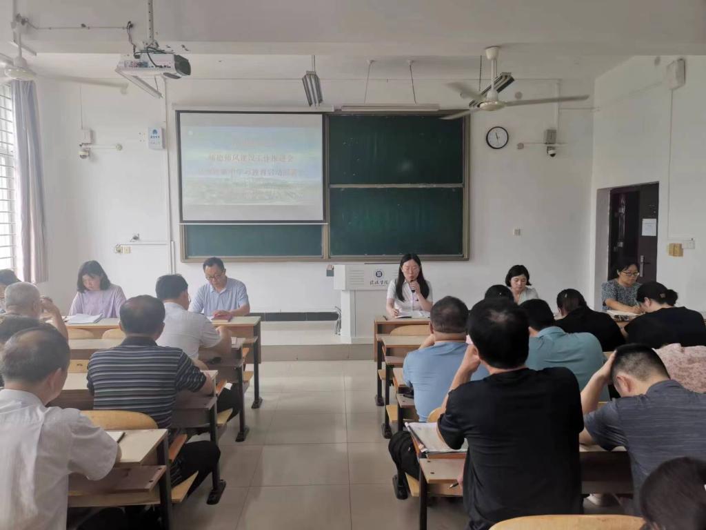 6月21日上午,外国语学院在外语楼202教室召开师德师风建设工作推进会暨师德师风集中学习教育启动部署会。外国语学院院长罗德喜、党总支副书记程娇炎、教学副院长李静、学院干事和全体教师参加了本次会议。会议由程娇炎主持。