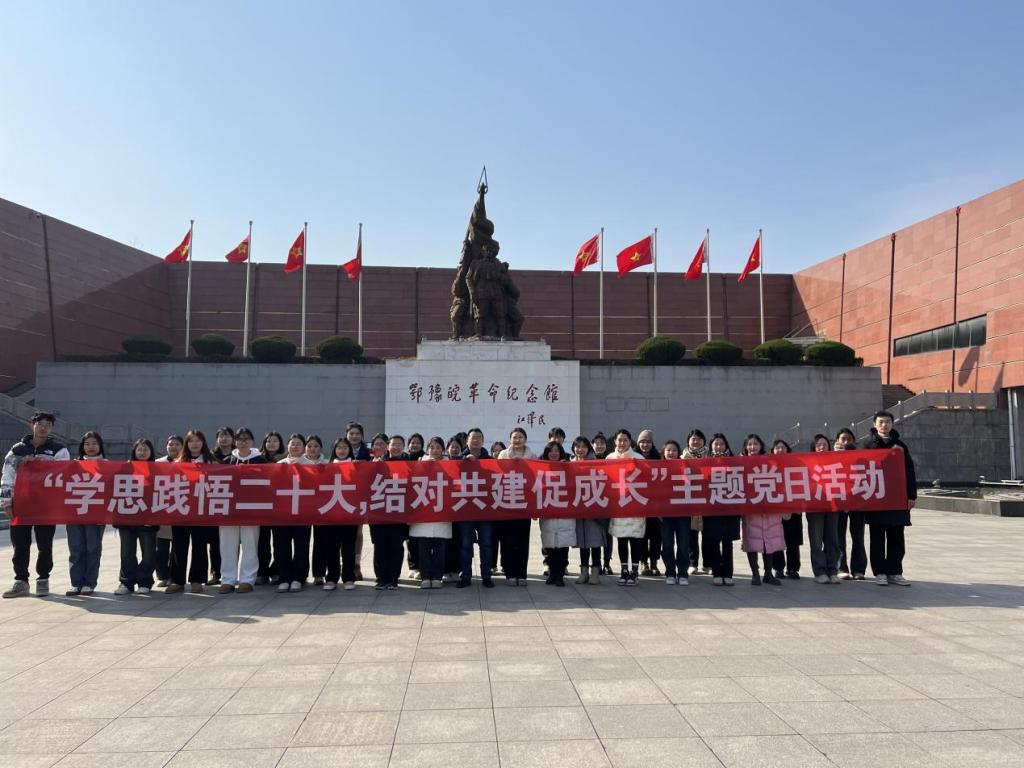 活动开始,全体师生党员前往鄂豫皖革命纪念馆面对党旗,缅怀革命先烈、敬献花篮、重温入党誓词。