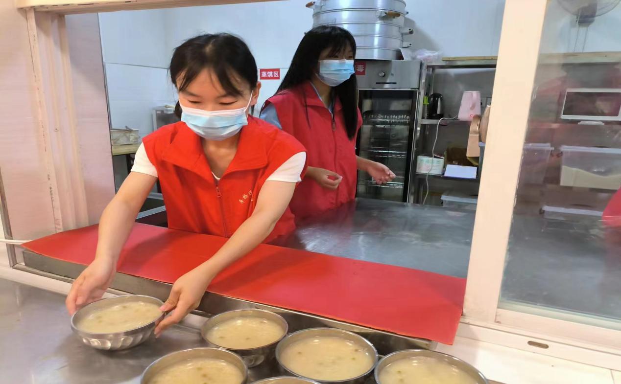 为提高社区工作人员的幸福感,23级英语本科07班马君杰于2024年7月14日参加了“爱心粥屋”志愿服务活动,向城市“美容师”——环卫工人送上温暖爱心。活动中,她为前来就餐的环卫工人盛粥、提供椅子。在本次活动中,马君杰认识到了青年学生应以实际行动弘扬志愿者精神,做爱心的传播者,文明风尚的践行者。