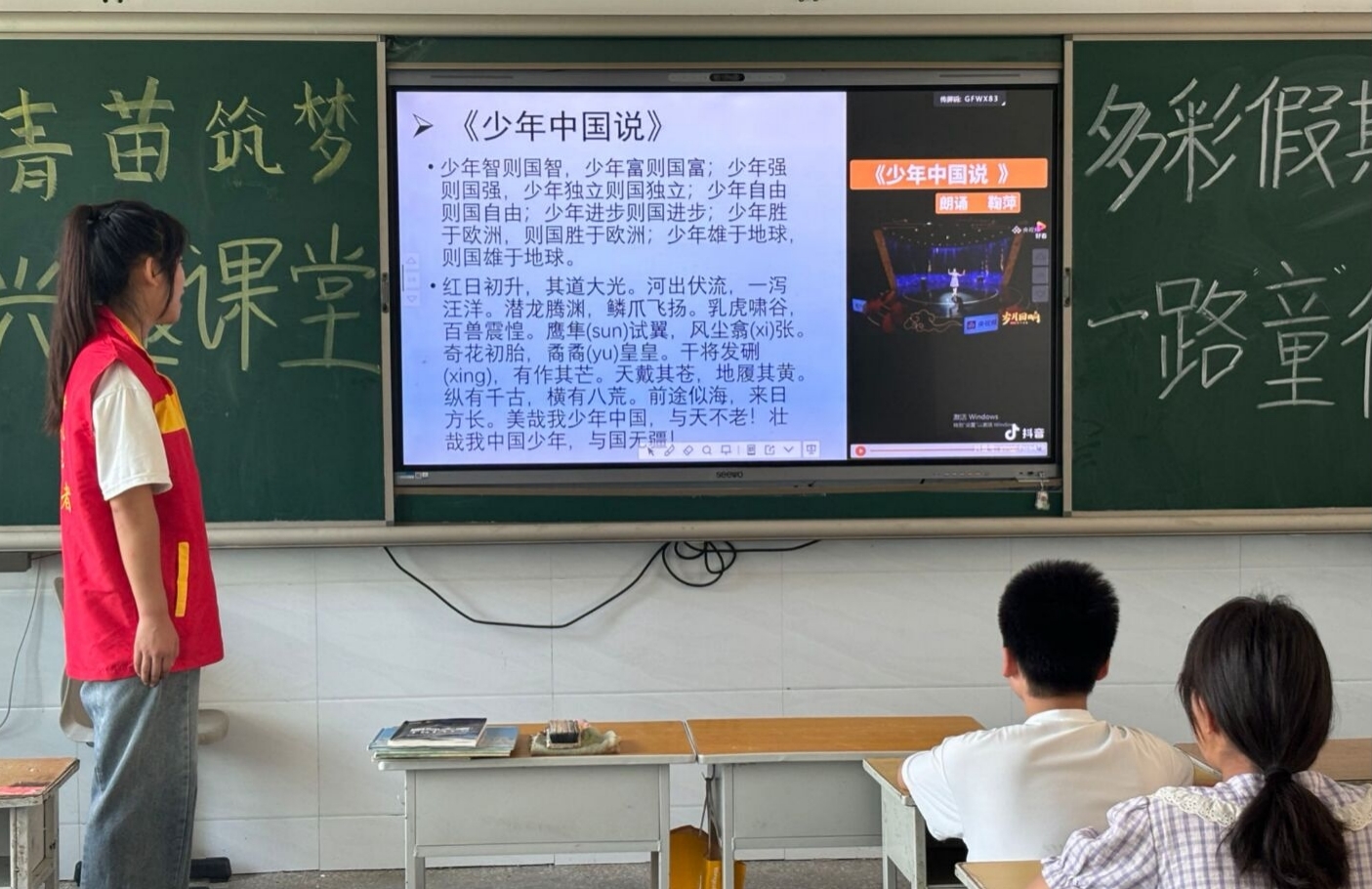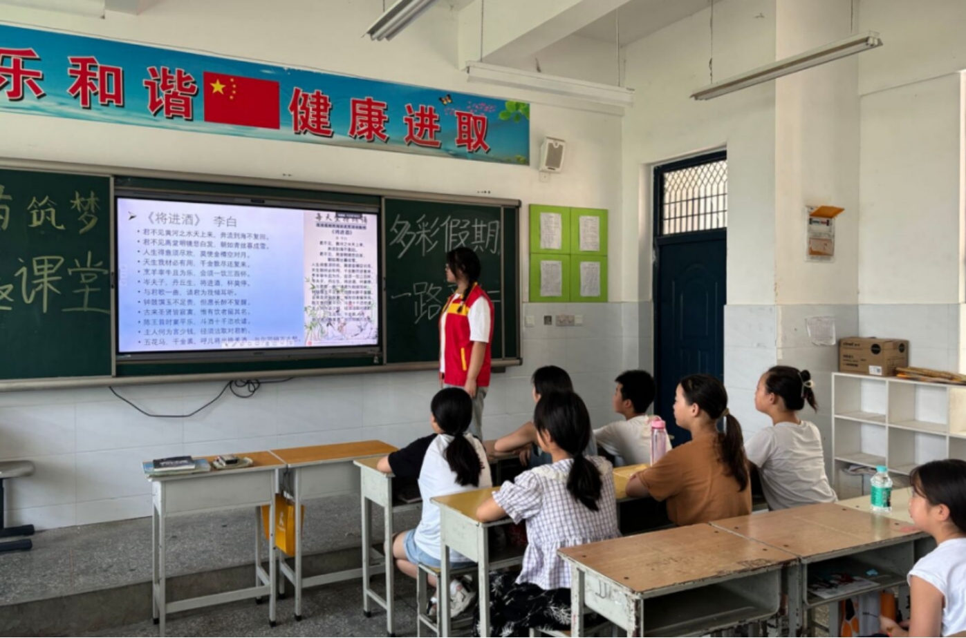为深入学习贯彻习近平总书记在同团中央新一届领导班子集体谈话时的重要讲话精神,2023级英语本科2班张佳怡于2024年7月22日在河南省共青团汝阳县委进行暑期“三下乡”社会公益活动。在活动期间,张佳怡同汝阳县委、相关小学负责人与其余两名志愿者积极发挥自身特长,系统开展了安全教育、经典诵读、兴趣阅读、体育等课程,丰富了农村未成年人的暑期文化生活,关爱帮扶了农村留守儿童。