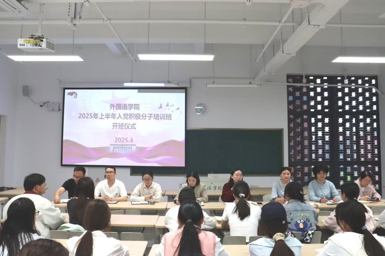 近日,外国语学院在南湖校区教二415教室举行2025年上半年入党积极分子培训班,外国语学院党总支副书记程娇炎、学工干事何珊珊、各学生支部书记及本期入党积极分子参加了开班仪式。仪式由何珊珊主持。