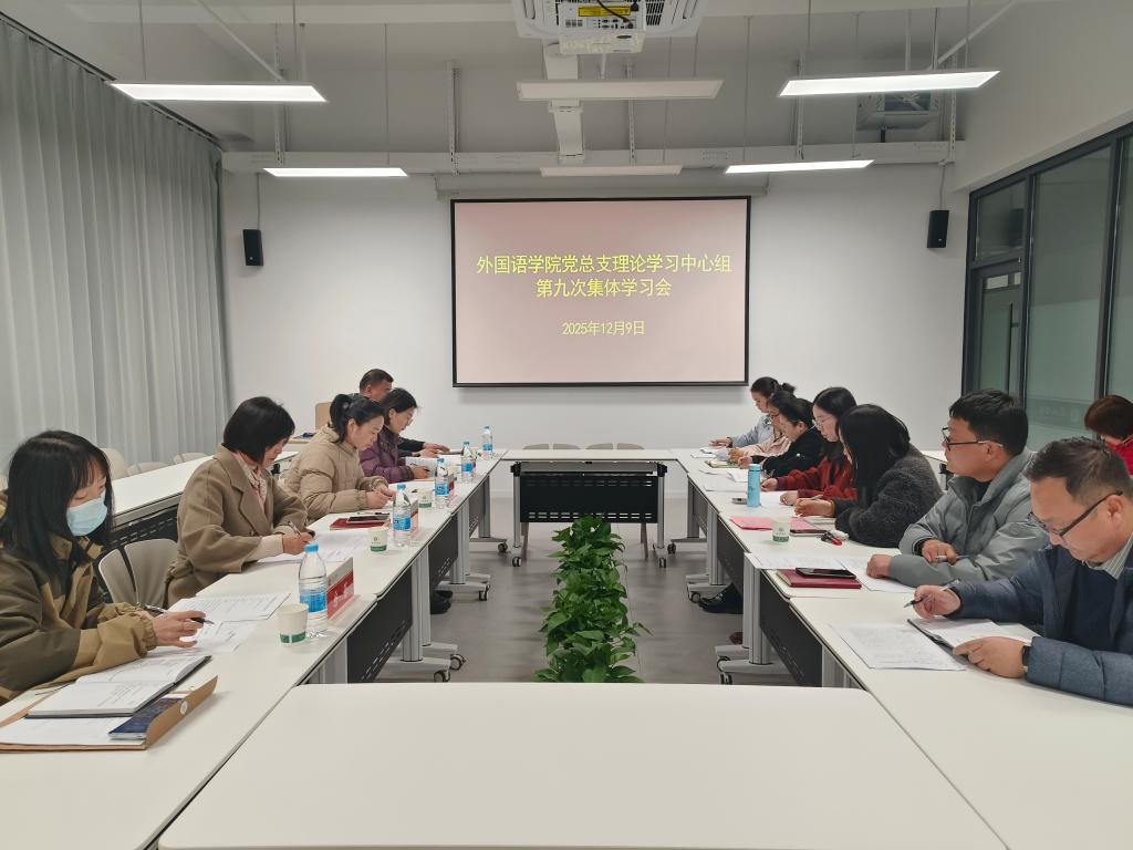 12月9日下午,外国语学院党总支理论学习中心组集体学习会在南湖校区教二楼316会议室召开。学院党总支书记程娇炎、党总支委员、各党支部书记及全体辅导员参加了本次集体学习,校党委办公室主任娄琪一行莅临现场,巡听理论学习中心组学习情况。本次集体学习由党总支书记程娇炎主持。