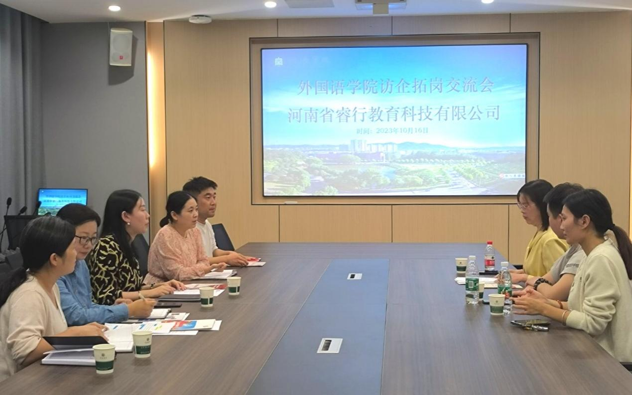 为全面贯彻关于高校毕业生就业工作的决策部署,深入落实就业工作“一把手”工程,千方百计开拓更多就业岗位和机会,促进我院2024届毕业生充分就业和高质量就业,10月16日下午,外国语学院党总副书记程娇炎特邀请河南省睿行教育科技有限公司经理江锟一行来我院进行专场招聘座谈会,学工干事何珊珊以及2020级毕业班辅导员参会。