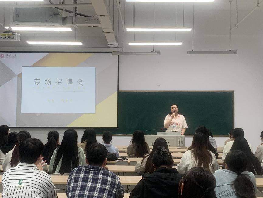 10 月 11日下午,外国语学院在教二楼210教室举行校园招聘会,莘博教育执行校长马校长等一行人参加了本次招聘会。本次招聘会旨在为外国语学院的学子们提供广阔的就业平台,搭建起学生与企业之间的桥梁。