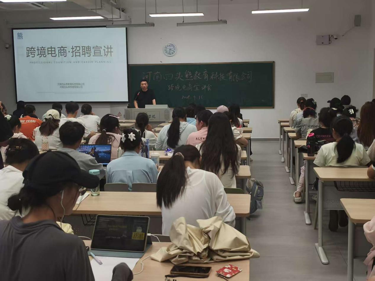 9月16日,我院邀请河南四头熊教育科技有限公司到校开展跨境电商专场招聘宣讲会,吸引众多26届毕业生积极参与,宣讲现场气氛热烈。