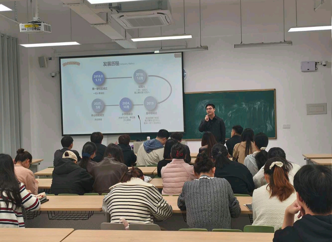 活动聚焦企业招聘需求与学生求职诉求精准对接:乐君科技向学生展示公司文化、业务布局及发展前景,明确英语全职教师岗位的教学场景与双语教学、课堂管理等核心能力要求,助力学生精准匹配岗位;宣讲会明确“带简历+英文自我介绍”的求职要求,引导学生针对性打磨材料、强化英文表达,同时讲解招聘流程与面试重点,缩小求职信息差,推动学生从被动接收转向主动适配。