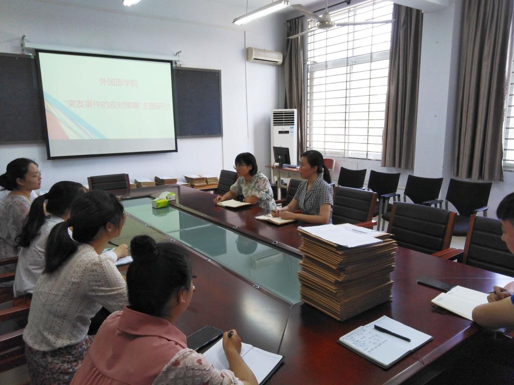 为进一步加强辅导员队伍能力建设,提升工作能力水平,9月1日上午,外国语学院在外语楼110会议室召开“突发事件的应对策略”为主题的研讨会。党总支书记李静,学工负责人和全体辅导员老师参加了会议。