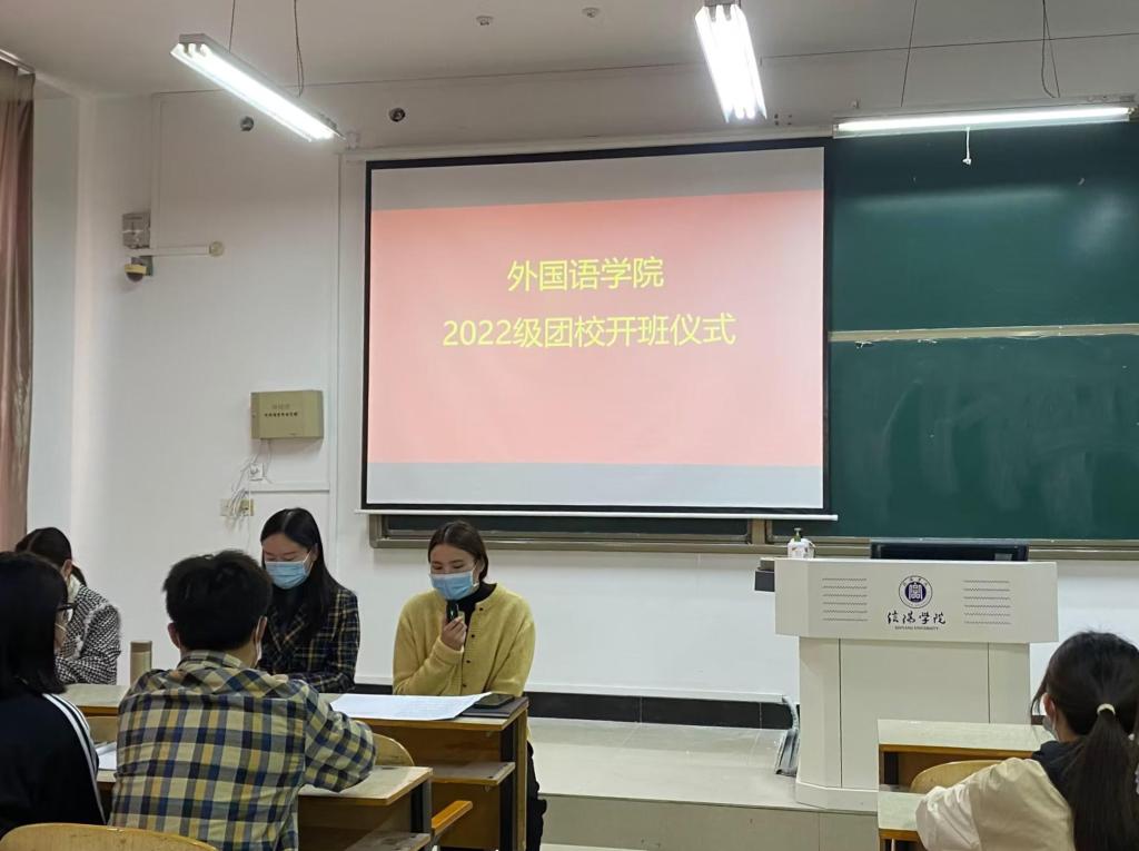 为深入学习贯彻习近平总书记系列重要讲话精神和党的二十大精神,增强党团骨干凝聚力和向心力,教育引导团员学好党团史,坚定信念,提升综合素质和能力,外国语学院团总支根据校团委有关工作部署,于11月8日下午在外语楼302教室举行了2022级团校开班仪式。出席本次开班仪式的有外国语学院党总支副书记程娇炎、学工干事何珊珊、团总支书记郑青以及2022级优秀团员代表。会议由郑青主持。