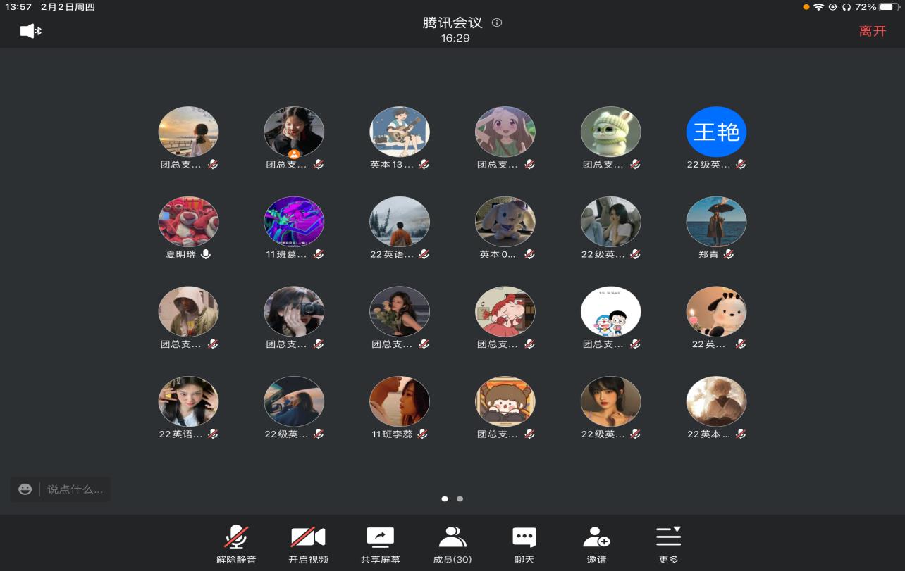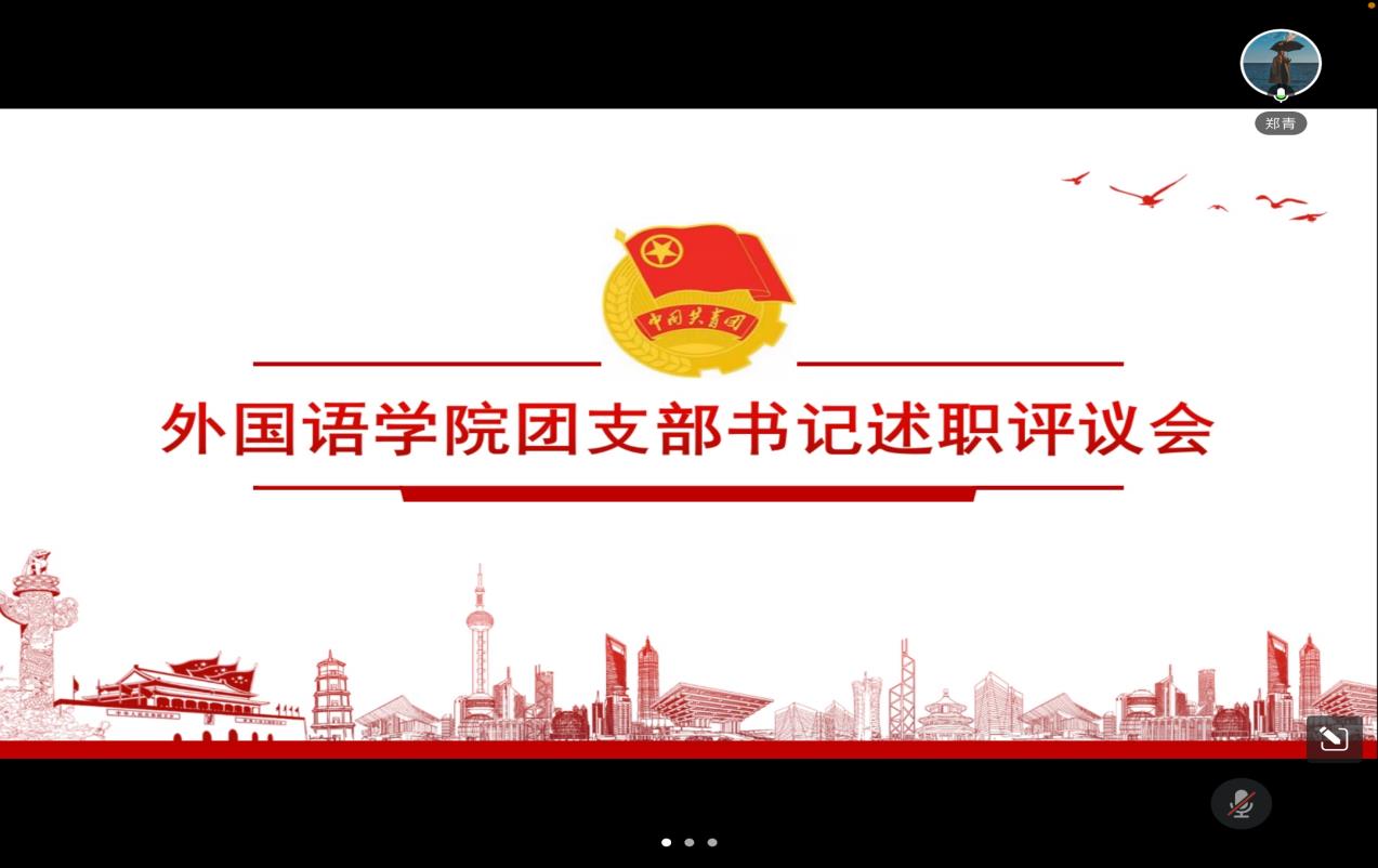 为进一步落实从严治团要求,切实抓好团干部队伍建设,提高团支部成员的责任感与使命感,加强对学生的思想引领,外国语学院于2月2日下午14点在腾讯会议召开团支部书记述职评议会议。参会人员有团总支书记郑青、团总支副书记夏明瑞、团总支社团部全体成员以及2022级各班团支书,此次会议由夏明瑞主持。