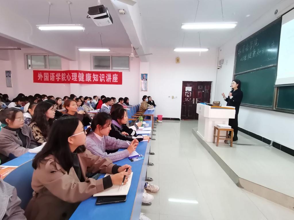 在2021年度心理健康教育宣传周来临之际,为进一步加强和提高大学生心理健康保健意识,促进心理科普,提高学生心理健康工作的有效性,11月2日,我院特邀心理专业教师崔小蕊在外语楼306教室举办心理健康知识讲座。外国语学院2021和2020级班长、心理委员及学生代表认真聆听了此次讲座。