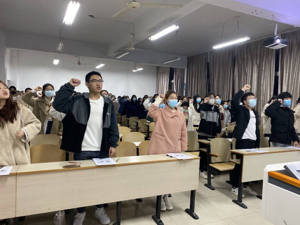 首先,宣讲团成员李函贞、邵梦迪、韩宁宁、田思楠先后通过相关短视频向同学们详细介绍了电信诈骗的内容及诈骗分子的常用手段,对部分学生的受骗原因做出分析。其次,她们结合真实的典型诈骗案例对学生们发出了几点倡议:1.树立正确金钱观;2.不贪图小利;3.提升安全防范知识;4.增强自身辨别能力。最后,宣讲员向同学们讲解了遭遇电信诈骗时的正确应对措施及求助方式,并带领大家进行反诈宣誓,增强了同学们的反诈信心。