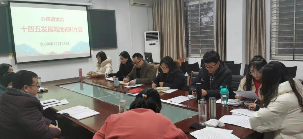 为认真贯彻落实党的十九大精神、全国教育大会精神、全国新文科建设工作大会精神及信阳学院双代会精神,做好“十四五”时期人才培养国际化、学科建设特色化、教学改革实效化等多项重要任务,进一步提高办学水平,更好地为地方经济发展与校企合作交流培养创新型、应用型、复合型的外语人才,外国语学院于12月25日在外语楼110会议室召开“十四五”规划讨论会。外国语学院院长罗德喜,党总支副书记程娇炎,教学副院长李静、学院班子成员和教研室主任参加了会议。会议由程娇炎主持。