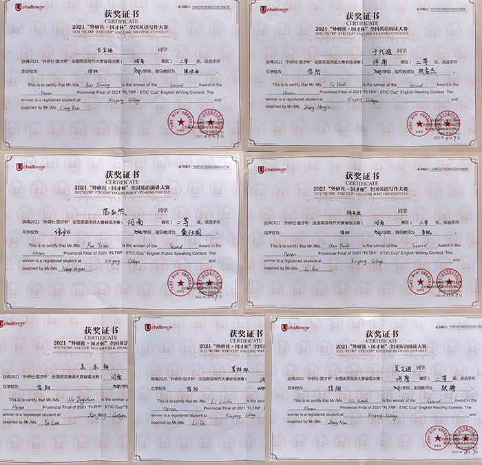 我校一向坚持将“外研社·国才杯”等英语专业类竞赛作为重点赛事项目,由外国语学院负责组织参赛。前期初赛在全校范围内选拔出优秀学生代表参加比赛,并由专业英语老师组成指导团队辅导参赛选手。通过赛前的悉心指导和精心准备,我校学子取得了优异成绩。本次比赛极大地激发了学生学习英语的热情,提高了学生英语实际应用能力,达到了以赛促练、以赛促学的效果,对促进我校外语教学水平提高起到了积极推动作用。