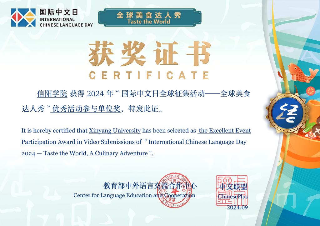 我校外国语学院青年教师董文静积极组建信阳菜文化翻译研究课题小组,深挖信阳菜文化和外语专业优势资源,其主持的信阳市哲社科市厅级项目《生态翻译学视角下信阳菜文化翻译研究》于2024年5月通过评审获准结项,2024年10月被评选为信阳市社会科学优秀成果;开展首届外国语学院国际青年文化交流公益项目,定期在国际平台通过中英双语向国内外美食爱好者和语言文化爱好者推介信阳菜文化,起到了加快语言翻译应用于信阳菜文化国际传播的作用。2024年7月,董文静被信阳市文旅局信阳菜产业发展中心授予“信阳美食国际推荐官”,致力于信阳非遗文化翻译与国际传播事业,用多语种讲好信阳故事,传播河南好声音。