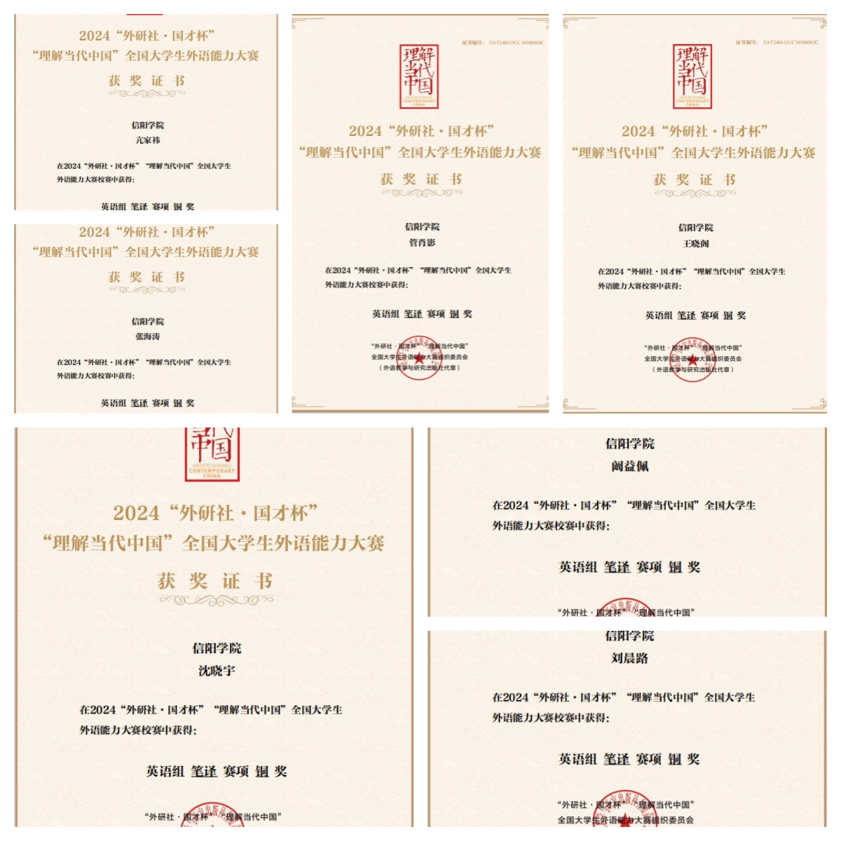 祝贺以上获奖选手!外国语学院竞赛指导团队的老师们正在进行省赛各赛项的筹备工作,省赛选手的二轮选拔也将在近期启动。届时各位指导老师们将和代表我校的省赛选手们一起努力备赛,争取在省赛阶段能有新的突破,赛出信院风采,共同向国赛迈进。
