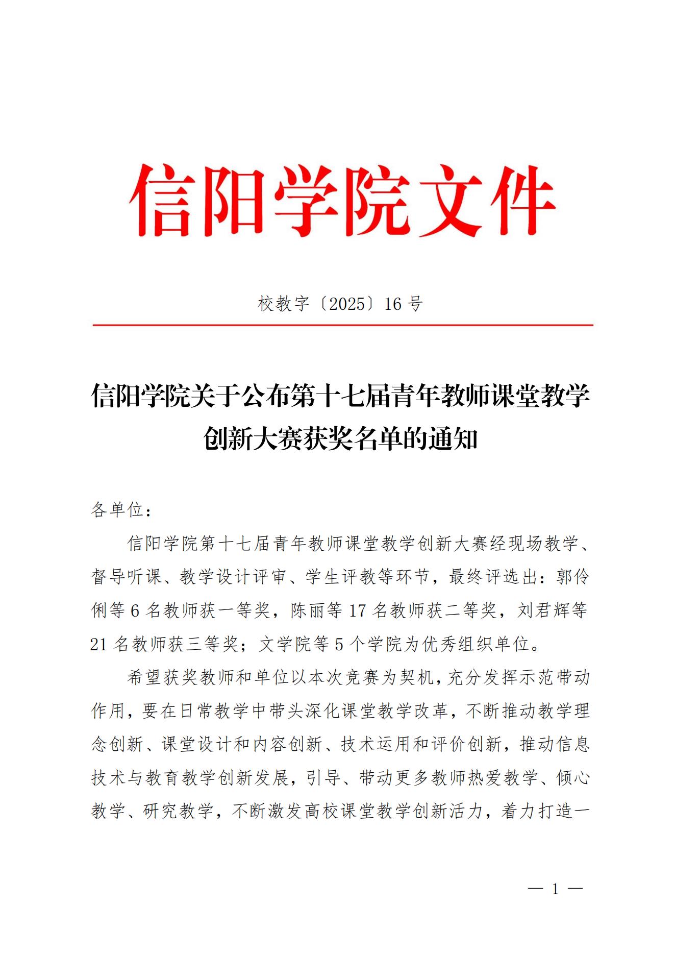 外国语学院在校第十七届青年教师课堂教学创新大赛中荣获优秀组织单位荣誉称号