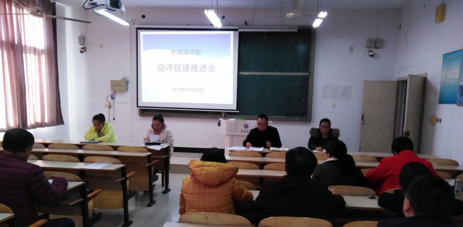 为全面提高教学水平和人才培养质量,进一步推进学院内涵发展,确保本科教学评估工作顺利通过,12月4号下午,外国语学院在外语楼302教室召开召开迎评促进推进会。院长罗德喜,学工干事刘阳红,教学干事柳衡,行政干事梁书荣和全体教师参加了本次会议。会议由梁书荣主持。