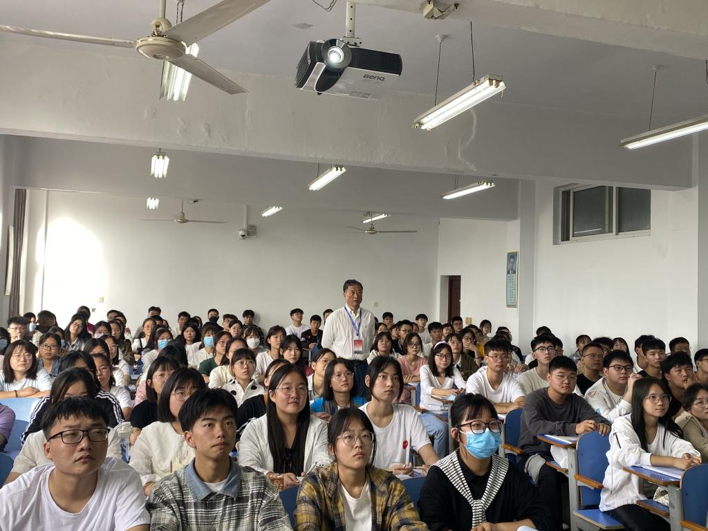 9月22日上午,外国语学院迎来了2022级新生开学第一课。校战略发展咨询委员会主任熊健民在外国语学院院长罗德喜、党总支副书记程娇炎、教学副院长李静、校长办公室秘书孟祥龙和学院干事等同志的陪同下,深入教室查看2022级新生开学第一课上课情况。