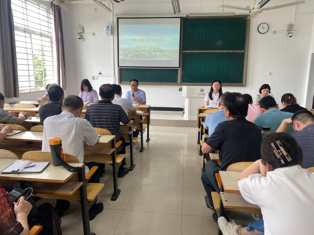 6月21日上午,外国语学院在外语楼202教室召开期末工作会议。外国语学院院长罗德喜、党总支副书记程娇炎、教学副院长李静、学院干事和全体教师参加了本次会议。会议由程娇炎主持。
