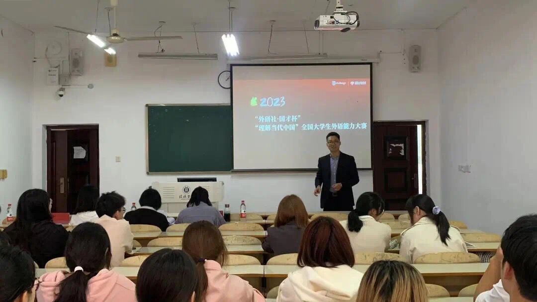 为引导学生深入领会习近平新时代中国特色社会主义思想,培养家国情怀,拓展知识广度,展现外语能力,10月10号下午,外国语学院在外语楼201教室举行2023届“外研社•国才杯”“理解当代中国”全国大学生外语能力大赛信阳学院选拔赛。