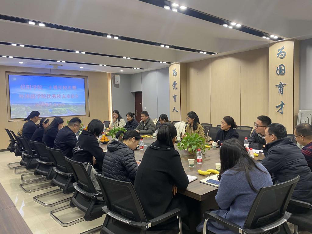 11月16日,信阳学院迎来了二十华诞。为庆祝建校20周年,加强校友与母校之间的联系,促进学校各项事业奋进发展,凝聚学院发展各方力量,外国语学院邀请部分优秀校友返校参加校庆庆典并召开了校友座谈会。