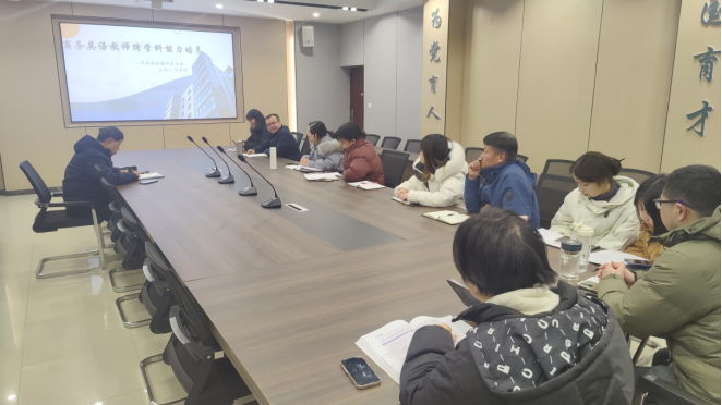 12月19日下午,外国语学院商务英语教研室在外语楼110会议室开展主题为“商务英语教师跨学科能力培养”的精品教研活动。信阳学院督导专家何杰英教授及全体商务英语教研室教师参加了本次教研活动。活动由教研室老师常美艳副教授主持。