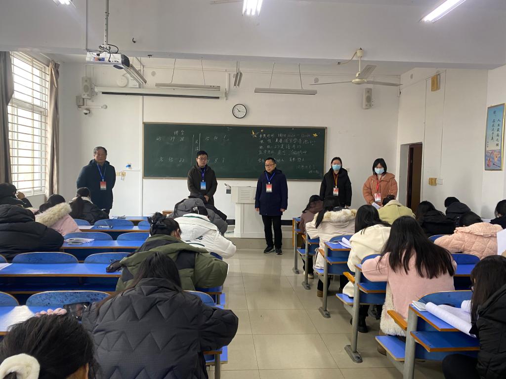 为加强考试管理,严肃考风考纪,促进良好学风建设,2024年1月9日上午,学校战略发展咨询委员会主任熊健民,校长办公室秘书孟祥龙,外国语学院院长罗德喜、党总支副书记程娇炎、教学副院长李静和学院班子成员深入外国语学院期末考试现场进行巡考。