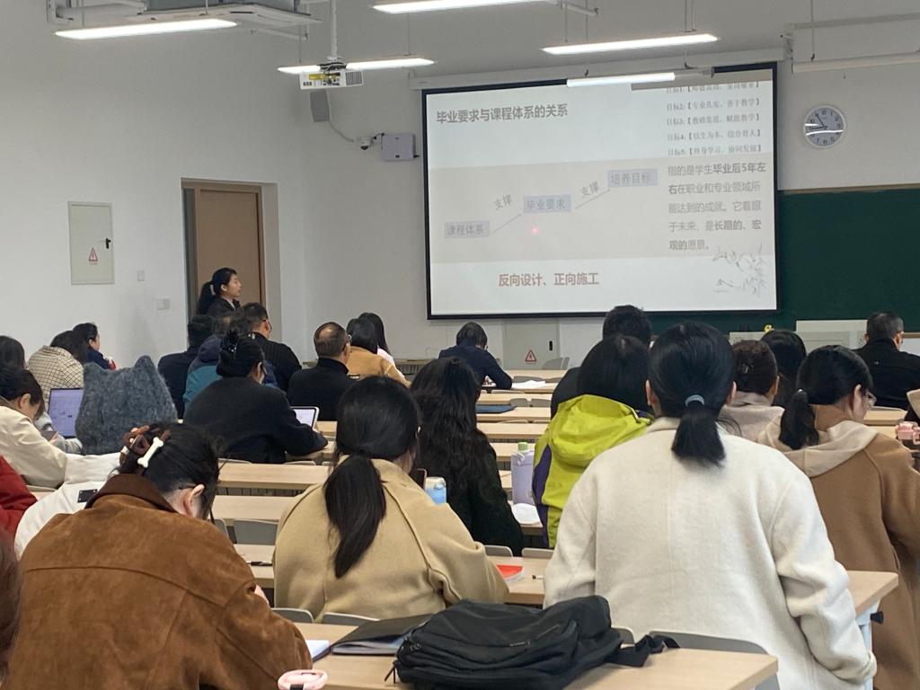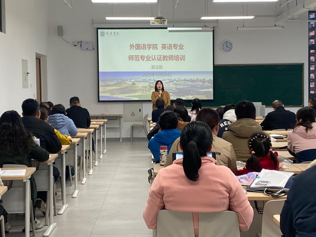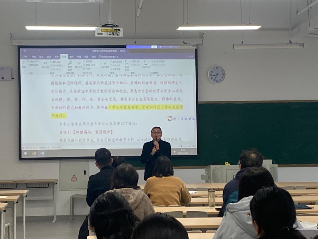 为扎实推进师范专业认证工作,全面提升师范教育质量,10月26日,外国语学院组织开展师范专业认证专题培训,外国语学院班子成员和全体教师参与,以集中学习为契机,为师范专业建设“充电赋能”。培训由专业负责人及各专项小组组长主讲。