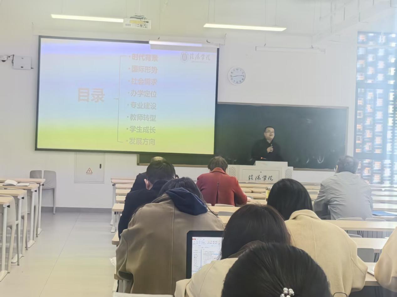 为深入剖析人工智能时代下教育生态变化,积极探索英语专业发展路径,有效助力提升英语师范认证质量,11月20日,外国语学院综合英语教研室在南湖校区教二楼415教室举办了以“人工智能时代下英语本科专业的发展趋势探析”为主题的教研活动。学校督导、外国语学院专家教授及全体教师参加了本次活动。活动由陈俊明主讲,综合英语教研室主任徐霞主持。