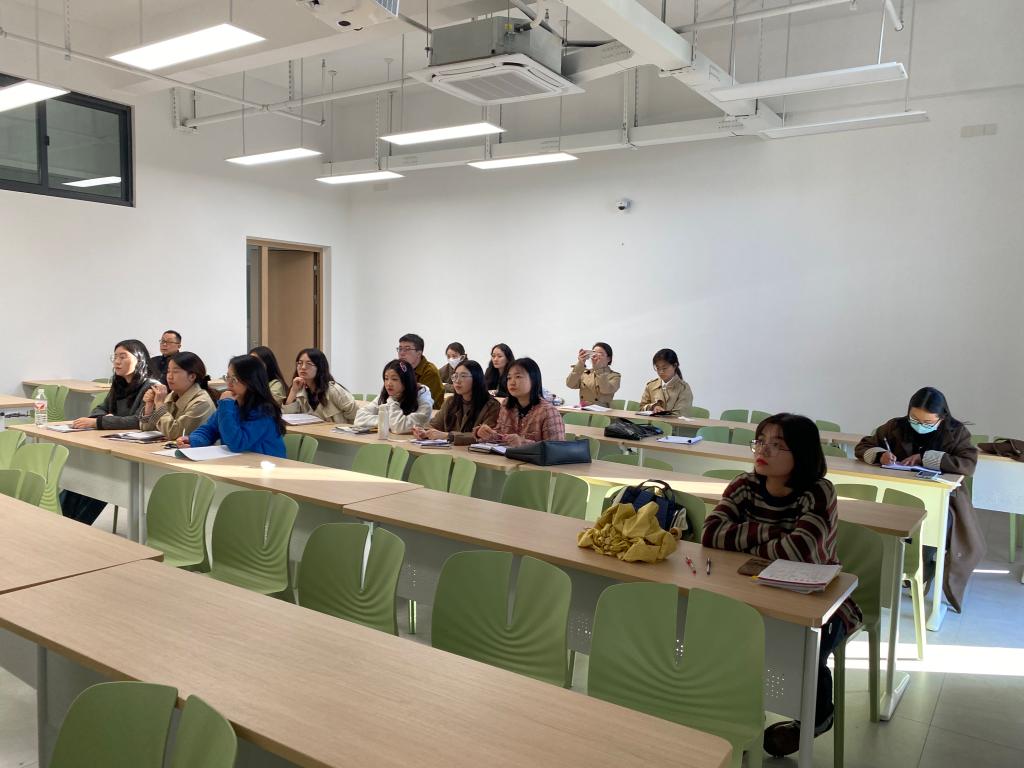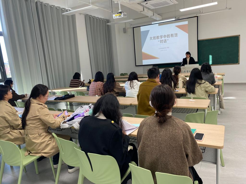 10月22日下午2点半,大学英语教研室罗颖副教授在南湖校区教二楼206教室为2023和2024年全体新入职教师做了题为《大班教学中的有效“对话”》的培训。
