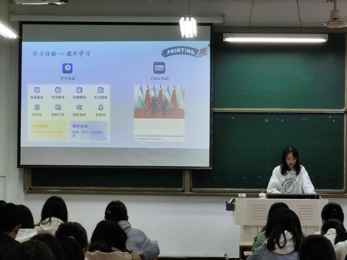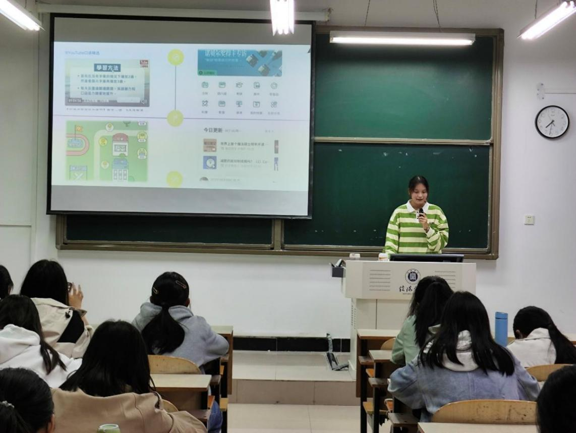 吕霞同学向新生们介绍了自己在课堂学习、课内学习,和及时复盘方面的见解,同时着重向新生们介绍了在课外借助各类学习软件或网址的便利性,使同学们意识到主动挖掘学习资源的重要性。