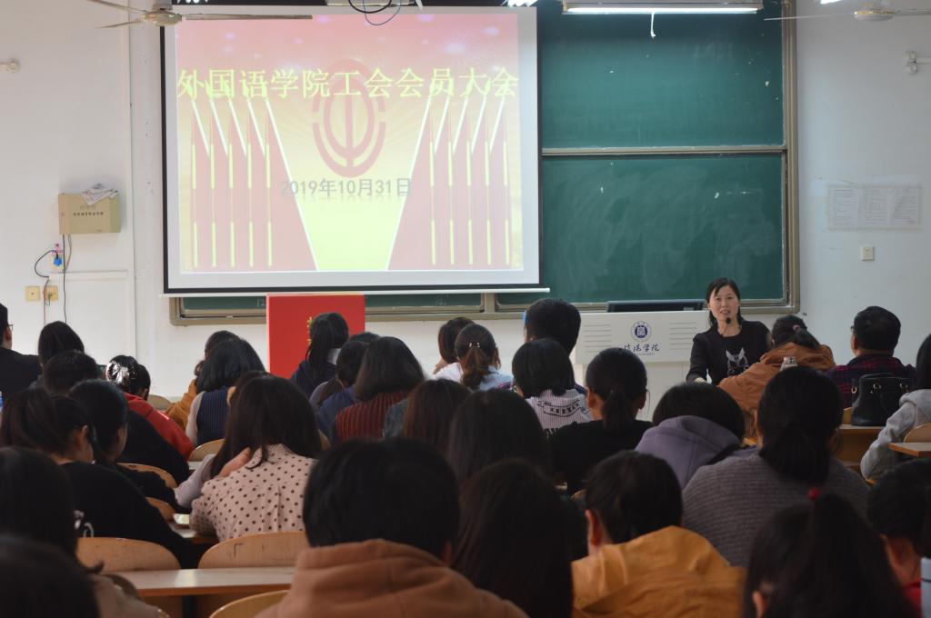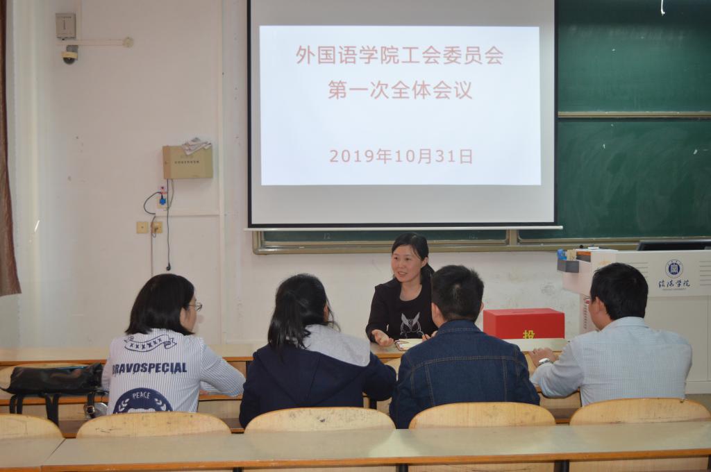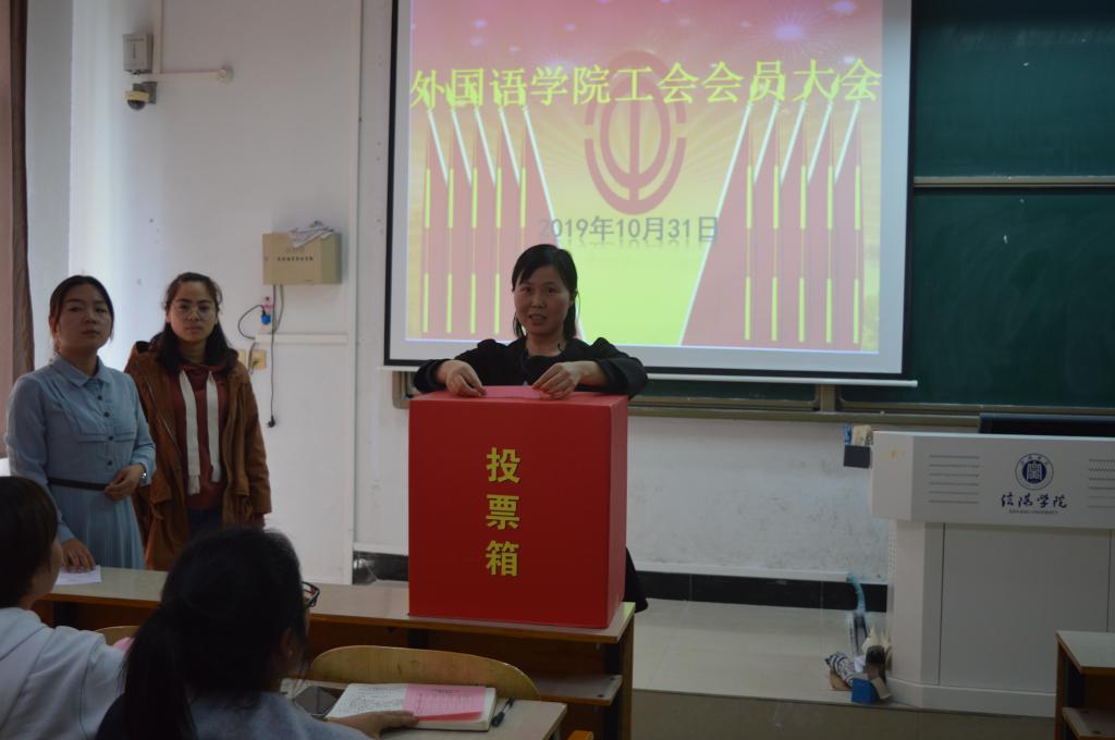 为进一步推进学院工会制度建设,建立健全基层工会组织机构,根据《中华人民共和国工会法》、《中国工会章程》、《工会基层组织选举工作条例》及《信阳学院分工会选举流程》的有关规定,结合外国语学院实际情况,10月31日中午,外国语院召开工会会员大会暨外国语学院工会委员选举大会。大会应到会会员79人,因公、因病、因事请假7人,实际到会的工会会员72人,超过应到工会会员的三分之二,符合法定人数,会议由外国语学院党总支书记李静主持。
