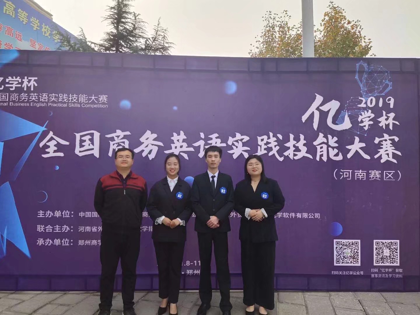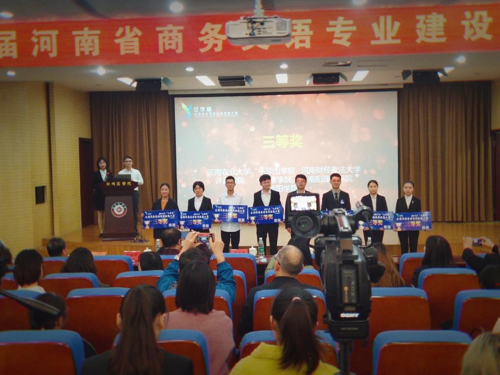 11月9日,第三届“亿学杯”全国商务英语实践技能大赛河南赛区在郑州商学院举行,来自河南科技大学,信阳师范学院,河南财经政法大学等24所学校的72名选手参加本次决赛阶段的比赛,同台竞逐最高荣誉。经过激烈角逐,我校外国语学院2017级商务英语本科1班学生胡炜光、殷华秀,2017级商务英语本科2班学生于冰悦,以总成绩排名前15的优异成绩荣获三等奖。