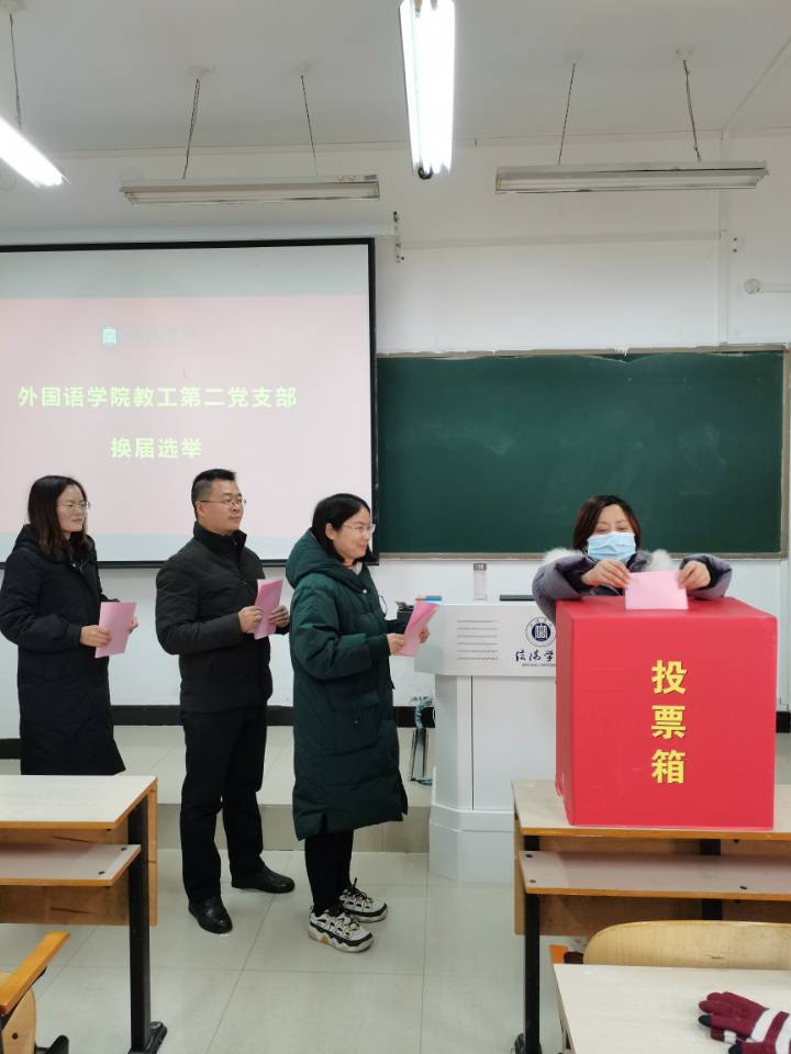 按照学校党委要求,依据《中国共产党章程》、《中国共产党普通高等学校基层组织工作条例》和《中国共产党支部工作条例(试行)》的规定,外国语学院党总支于2020年12月18日组织三个教工党支部和七个学生党支部进行了换届选举,采用无记名投票的方式差额选举出各支部委员和支部书记。