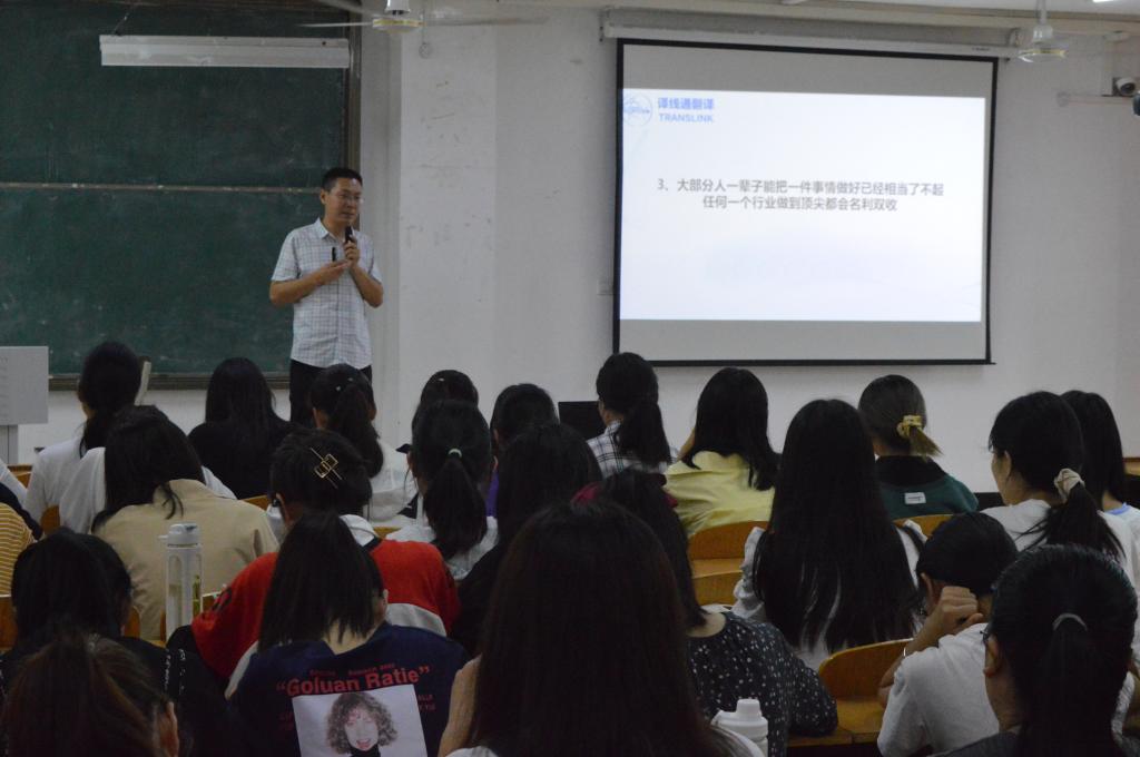 5月13日下午,郑州译线通翻译公司总经理张富垒一行来我院开展主题为《英语专业学生职业规划》的专题讲座。外国语学院院长罗德喜、党总支副书记程娇炎、学工干事刘阳红、辅导员吴章丽、赵晓伟和学生代表160余人在人文楼308教室参加了此次讲座,讲座由罗德喜主持。