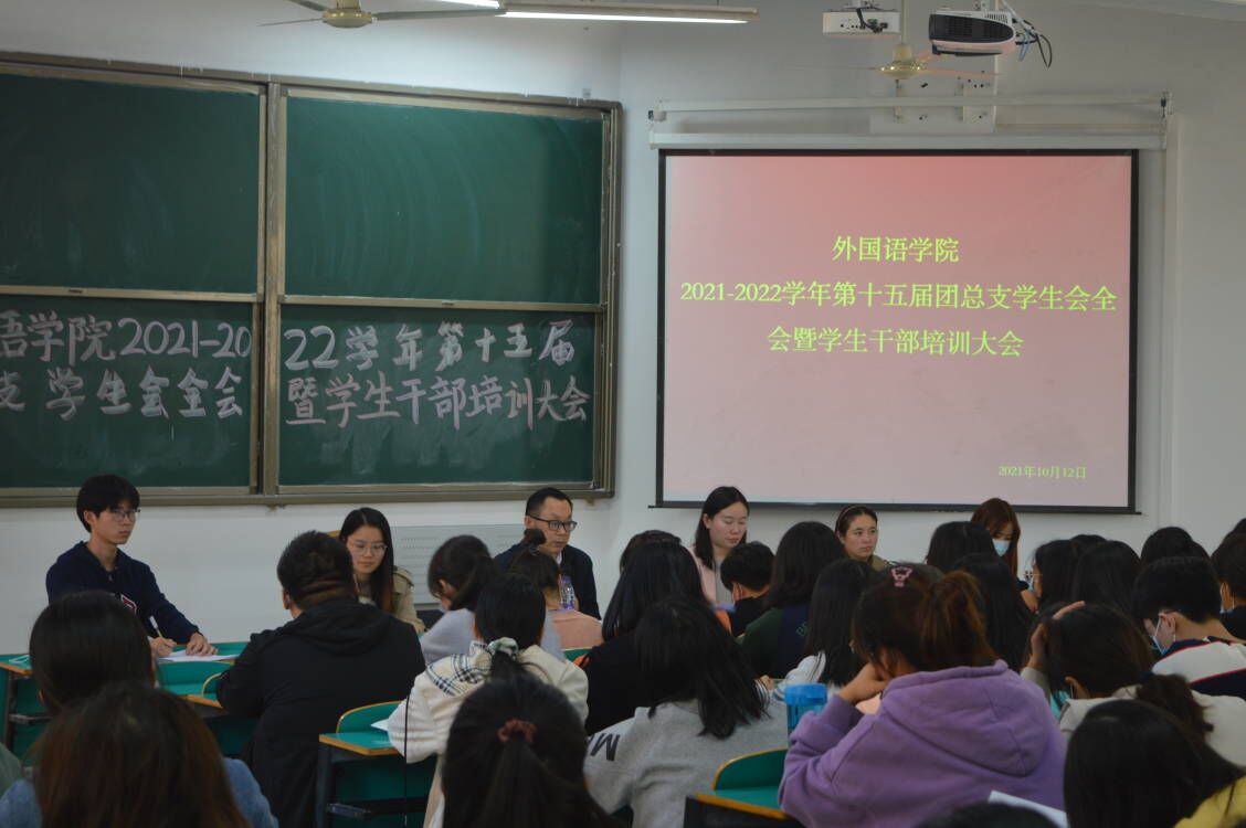 为提高我院学生干部的政治素养、工作能力以及更好地发挥其在学生中的模范带头作用,我院于10月12日中午在数计楼105教室召开2021-2022学年第十五届团总支学生会全会暨学生干部培训大会。外国语学院院长罗德喜、党总支副书记程娇炎、学工干事何珊珊、团总支书记吴章丽出席会议,新一届团总支学生会全体成员、2020级和2021级班委代表参加了会议。会议由吴章丽主持。