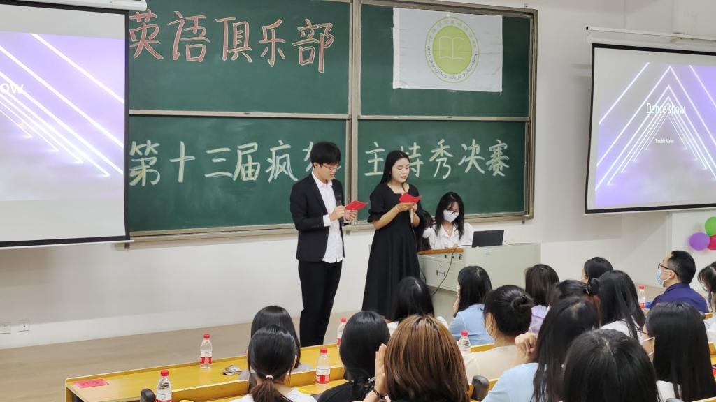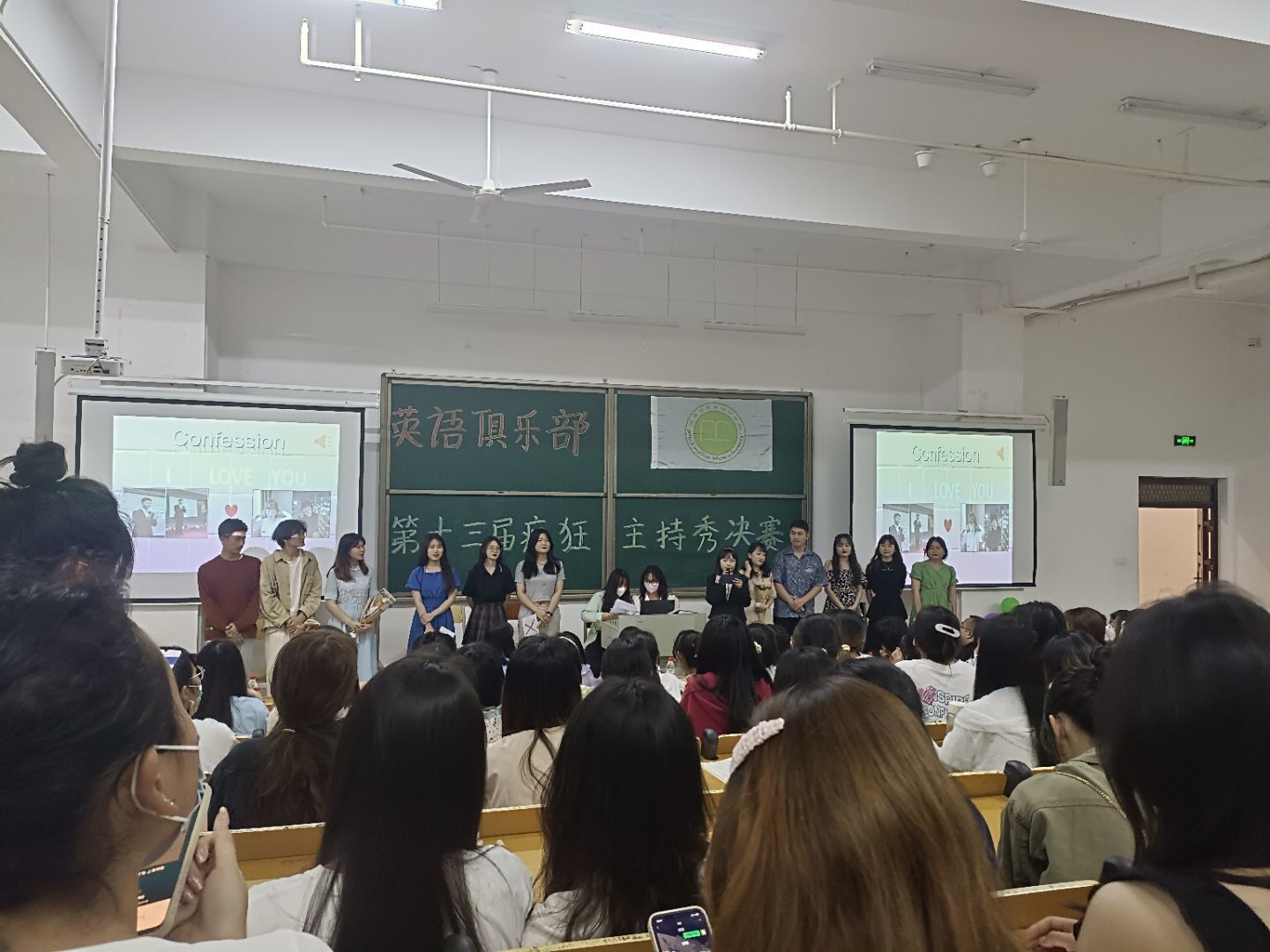 5月17日晚上七点半,外国语学院英语俱乐部在综合楼203成功举办了第十三届疯狂主持秀决赛。本次比赛邀请到的嘉宾有外国语学院院长罗德喜教授、社团指导老师陈俊明、李亚芳、张美玲、张金梅、王晓丽、外籍老师Anna、Justin Stevens、学生潘雅静、张梦娟及社团联合会代表、外国语学院学生会代表及AFC动漫爱好者协会代表。伴随着主持人亲切的问候,决赛正式拉开了帷幕。