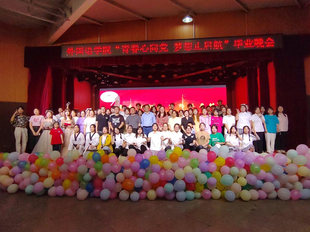 5月31日晚,外国语学院“青春心向党,梦想正启航”2023届毕业生文艺晚会在大学生活动中心举行。外国语学院党总支副书记程娇炎、教学副院长李静和700余名师生共同观看了晚会。