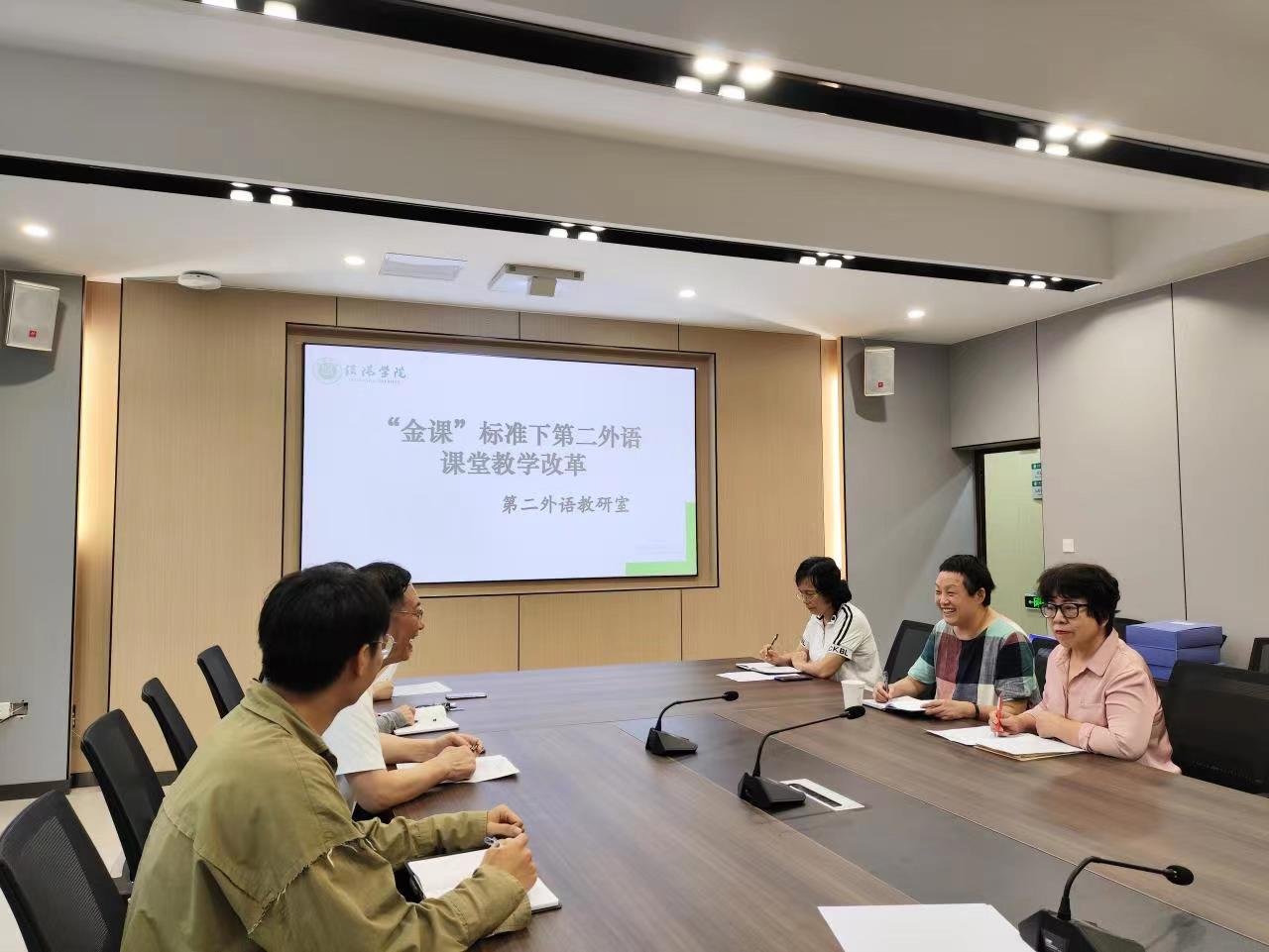 9月12日下午,外国语学院第二外语教研室全体老师在外语楼110会议室开展了以“‘金课’标准下第二外语课堂教学改革”为主题的教研活动,活动围绕高校教学改革展开。活动由第二外语教研室主任郭阳阳主持。